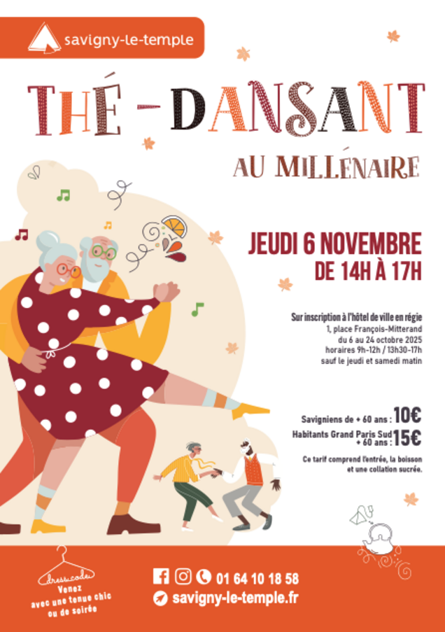Amoureux de la danse, marquez vos calendriers ! Le jeudi 6 novembre, de 14h à 17h, le Millénaire se transformera en une piste de danse enjouée pour accueillir un Thé Dansant d'Automne. Mettez votre plus belle tenue chic ou de soirée !