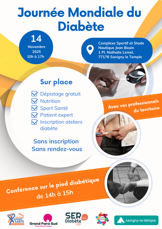Une action est organisée à l’occasion de la Journée Mondiale du Diabète, le 14 novembre 2025 de 10h à 17h au Complexe Sportif et Stade Nautique Jean Bouin, en partenariat avec la Maison Sport Santé de GPS, la CPTS Sénart et Ser Diabète.