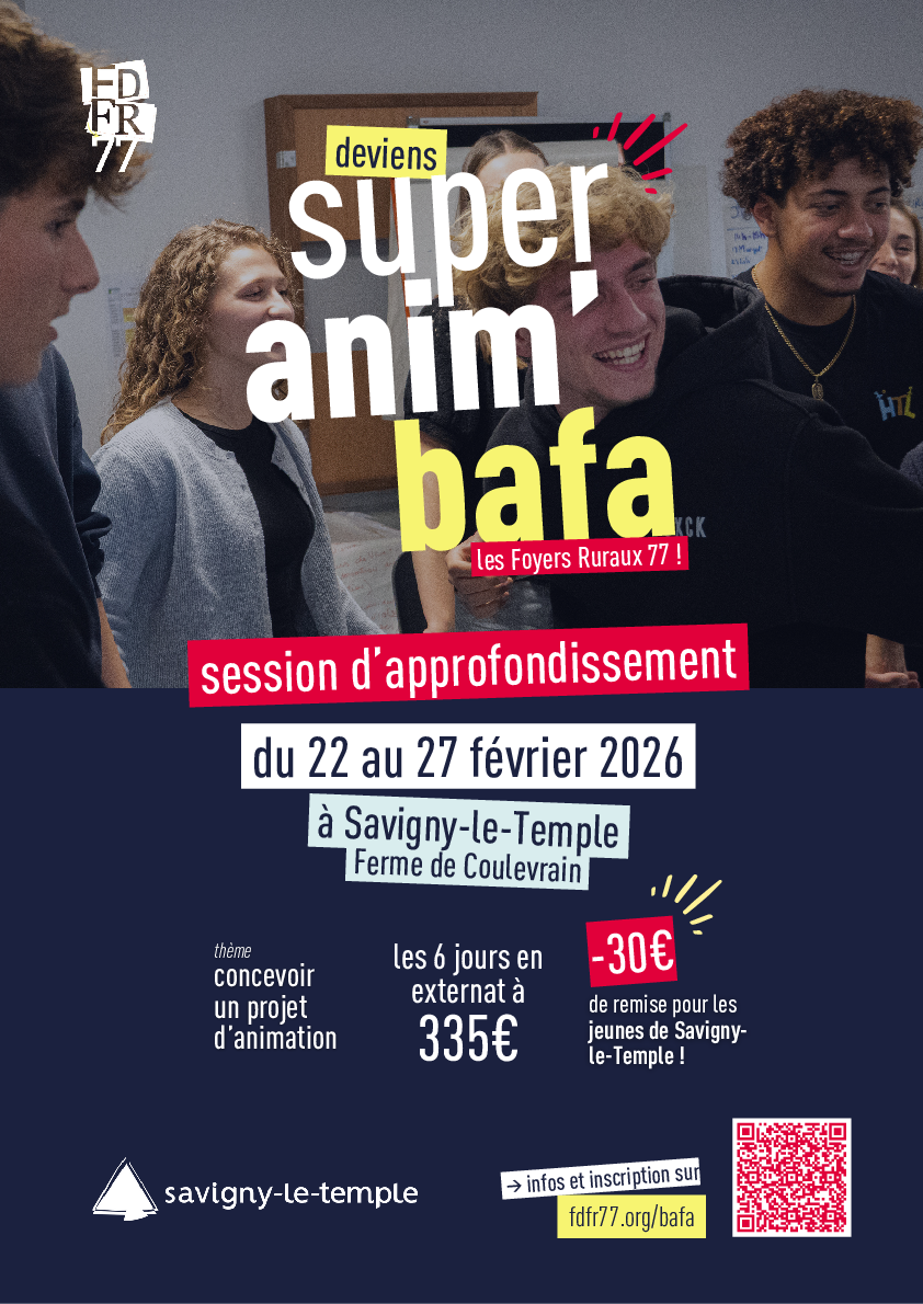 Du dimanche 22 au vendredi 27 février 2026 une session d'approfondissement BAFA est organisée à la Ferme de Coulevrain par la Fédération des Foyers Ruraux de Seine-et-Marne sur le thème : Concevoir un projet d'animation à partir d'un lieu.