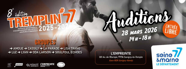 Assister aux auditions de la 8 ème édition du Tremplin 77, le samedi 28 mars de 14h à 18h à l'Empreinte.
