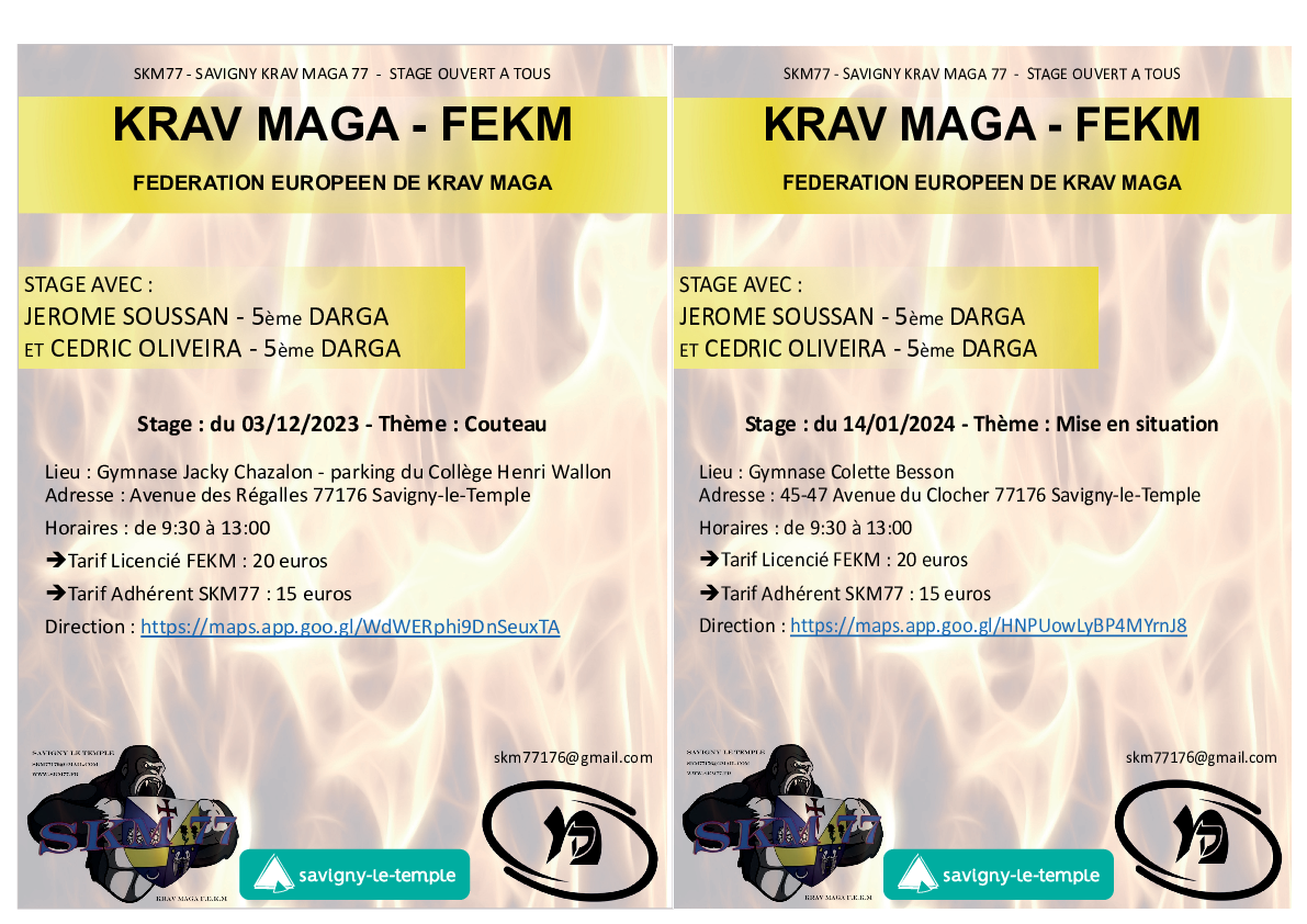 SAVIGNY KRAV MAGA 77 organise deux stages de Krav Maga ouvert à tous, les 3 décembre et 14 janvier, de 9h30 à 13h au Gymnase Jacky Chazalon.