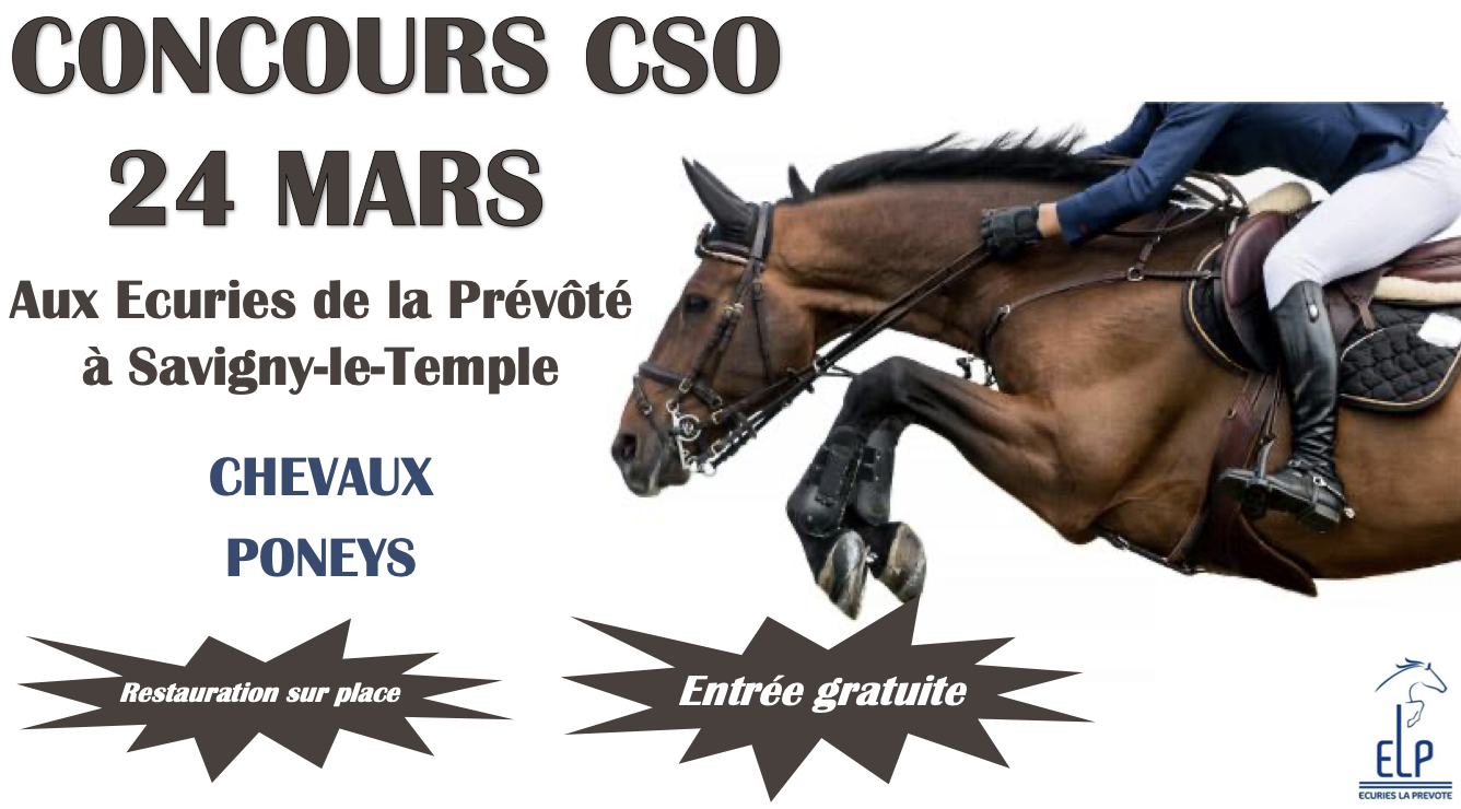 Rendez-vous le dimanche 24 mars aux écuries de la Prévôté pour un concours CSO, avec une variété d'épreuves pour chevaux et poneys tout au long de la journée.