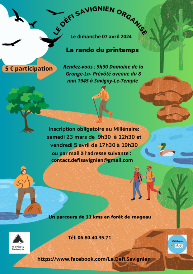 Inscription obligatoire vendredi 5 avril au Millénaire de 17h30 à 19h30 ou par mail : contact.defisavignien@gmail.com
