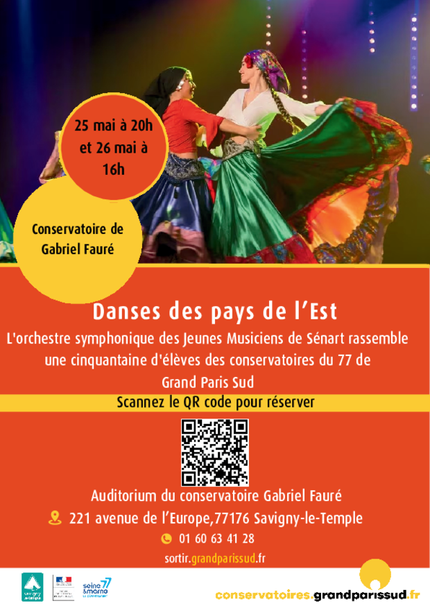 Assistez aux performances de l'Orchestre Jeunes Musiciens de Sénart lors du concert "Danses des pays de l'Est" les samedi 25 mai à 20h et dimanche 26 mai à 16h au Conservatoire Gabriel-Fauré.