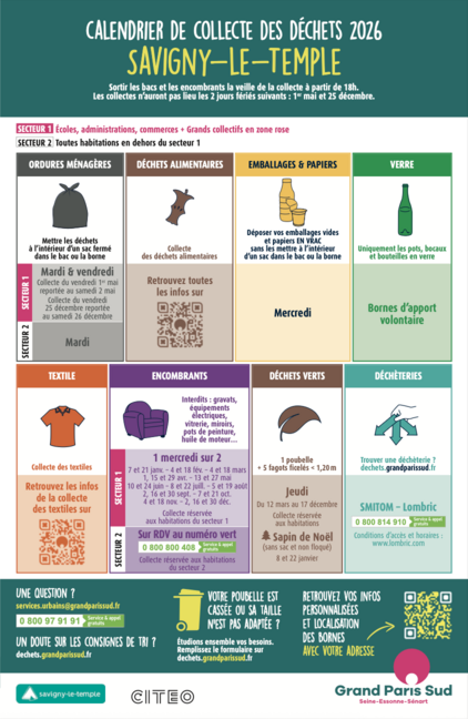 Pour rappel, les encombrants sont collectés sur rendez-vous pour les secteurs pavillonnaires et un mercredi sur deux dans les habitats collectifs. La collecte des déchets est une compétence de l’agglomération Grand Paris Sud.